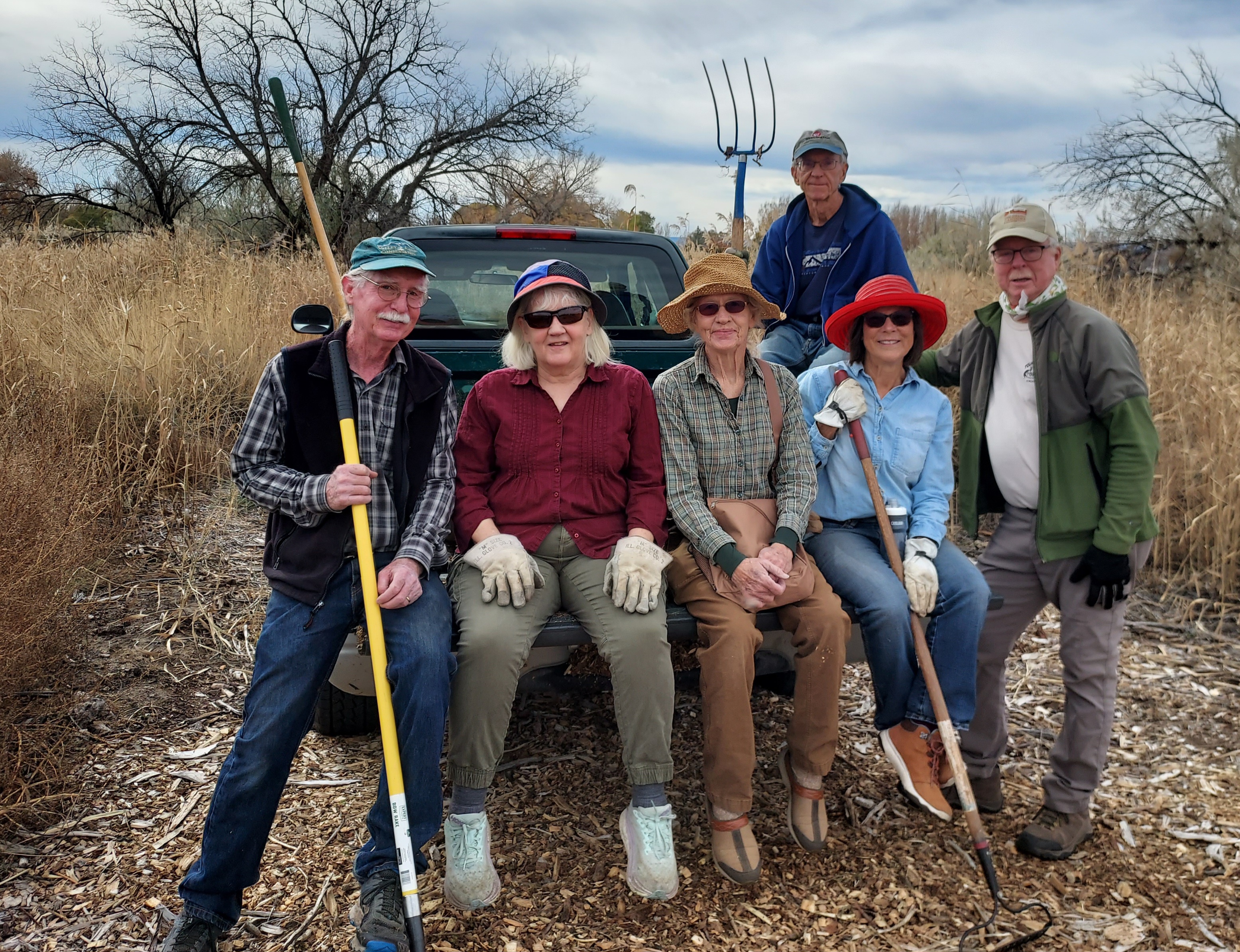 BCAS volunteers Jon Horn, Sallie Thoreson, Diane Sanders, Diane Roberts, Steve Dike, and Bill Harris, fall 2025. Photo by Marilyn Westerdahl.